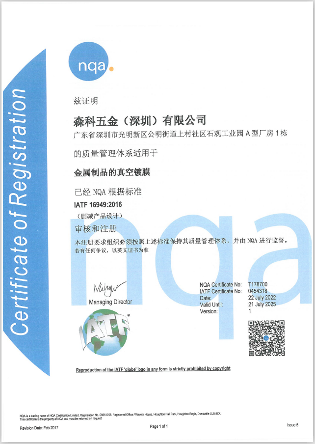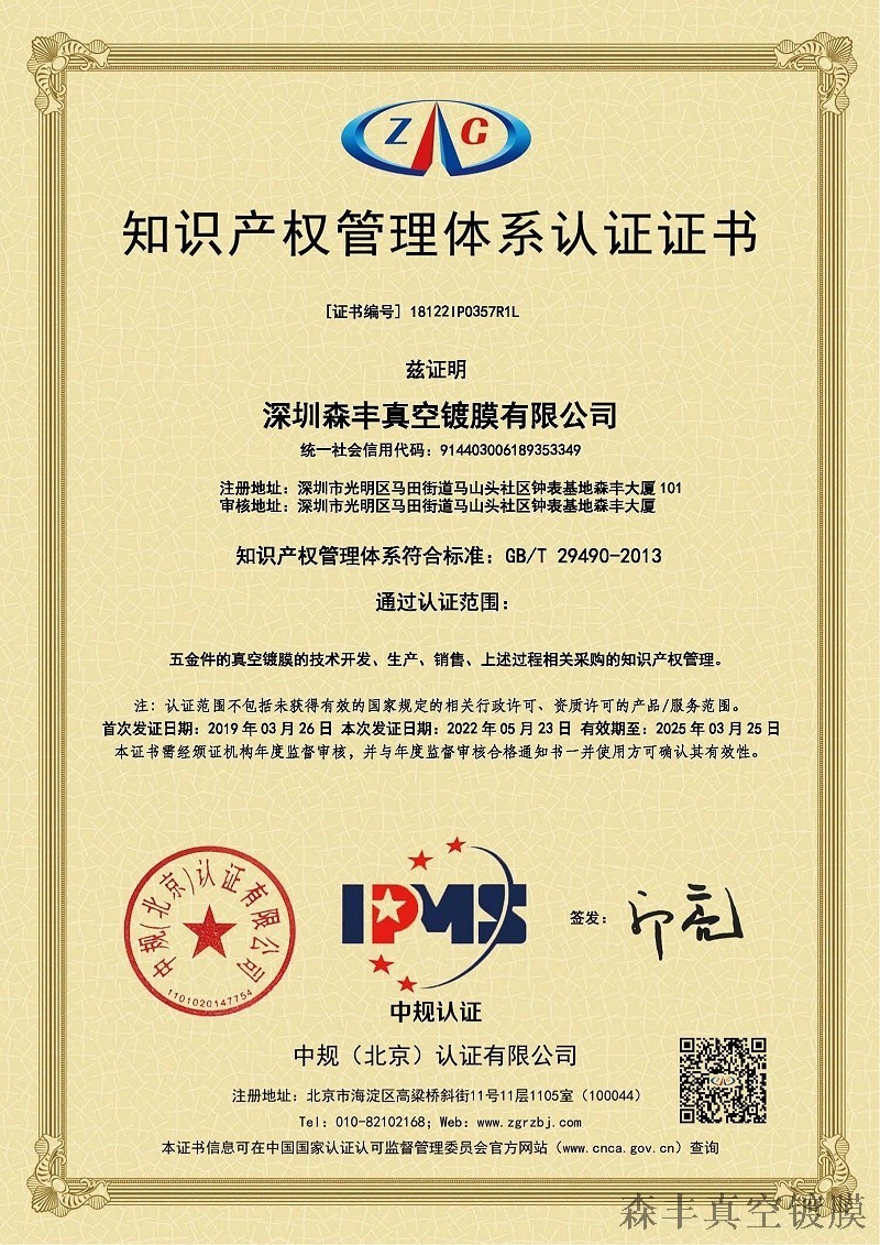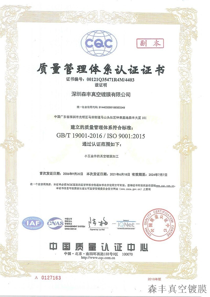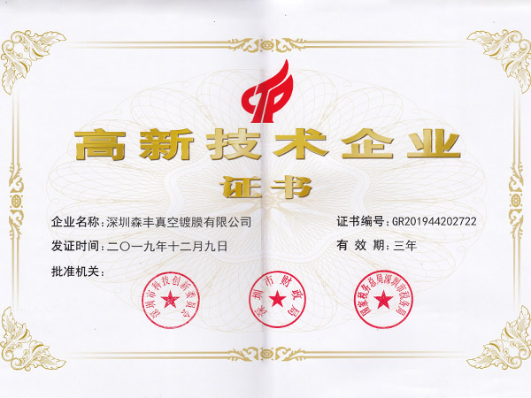 深圳森豐真空鍍膜有限公司國(guó)家高新技術(shù)企業(yè)金屬配件真空鍍膜加工基地