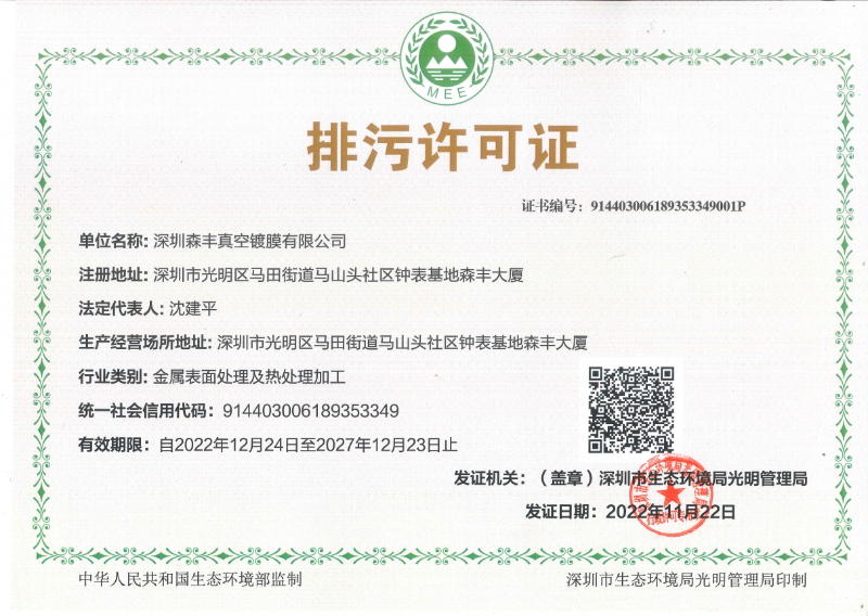 深圳森豐真空鍍膜有限公司國家高新技術(shù)企業(yè)金屬配件真空鍍膜加工基地